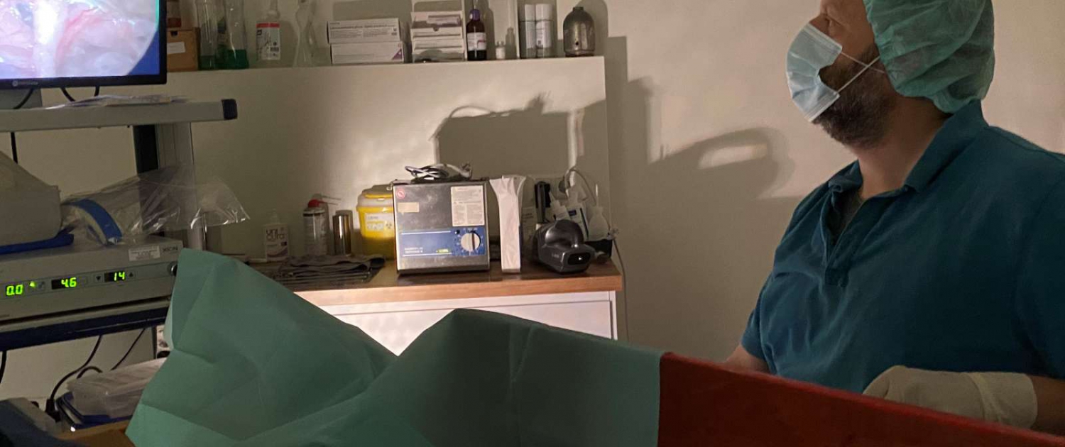 Nadat haar buik geschoren en schoongemaakt is, worden er twee kleine sneetjes in de buik gemaakt. Via een van de gaatjes wordt de buik opgeblazen met gas en wordt een camera naar binnen gebracht. Met deze camera kunnen wij de organen goed in beeld brengen. Door het tweede gaatje wordt een brand- en kniptang binnen de buik gebracht. De dierenarts kan alles op een scherm zien en zijn/haar handelingen op die manier goed volgen. Niet alleen de eierstokken zijn van belang. De dierenarts controleert ook meteen de gehele buik en alle organen die zichtbaar zijn.